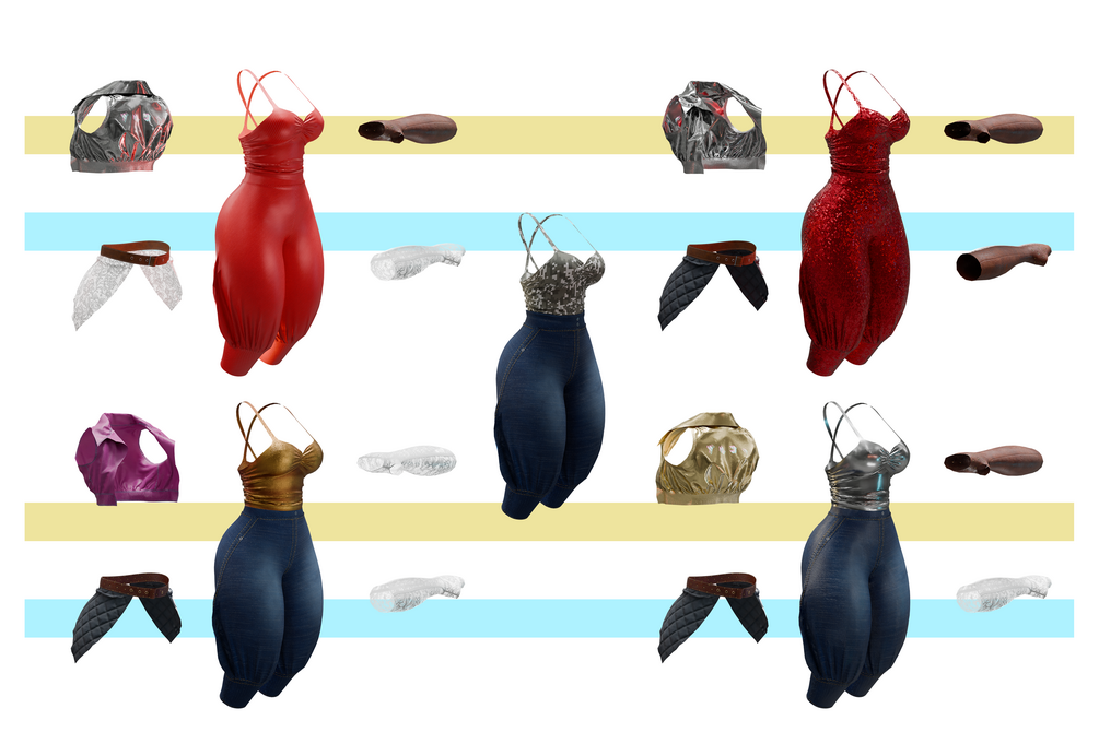 - 5 texture variants for jacket, 6 variations for dress, 2 variations for belt.
