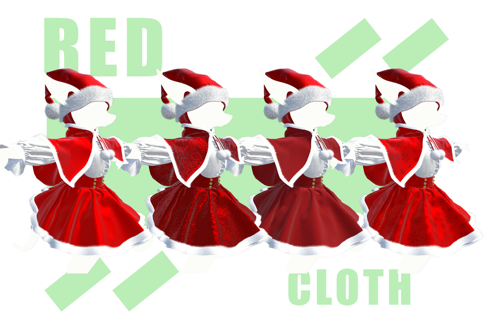 - Has 4 red and 4 green variations for each clothpiece to mix and match textures to your hearts content.